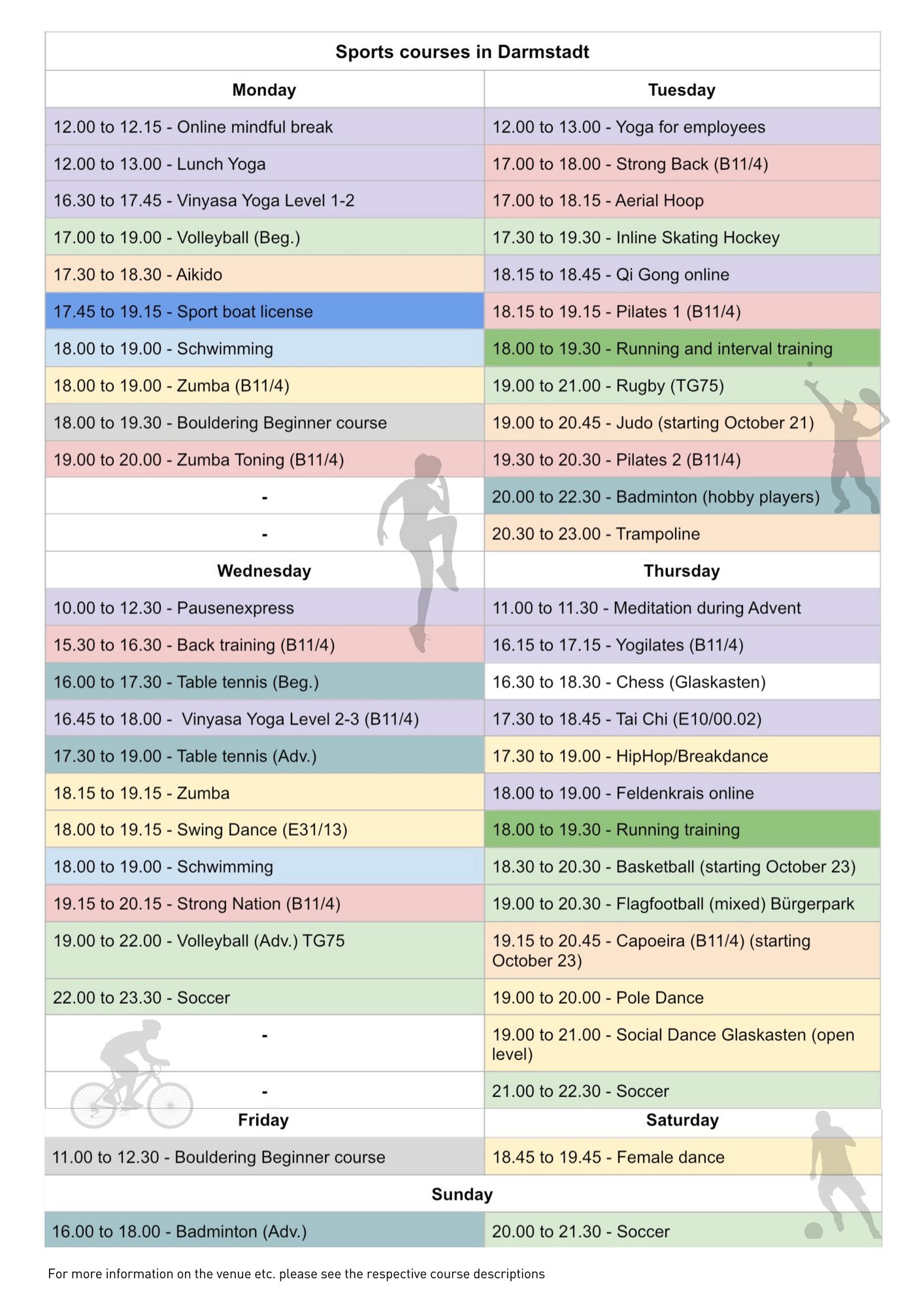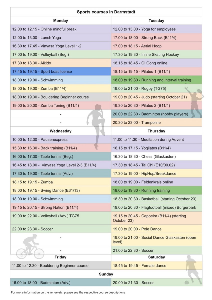 Outlines of the sports courses on the h_da Campus Darmstadt