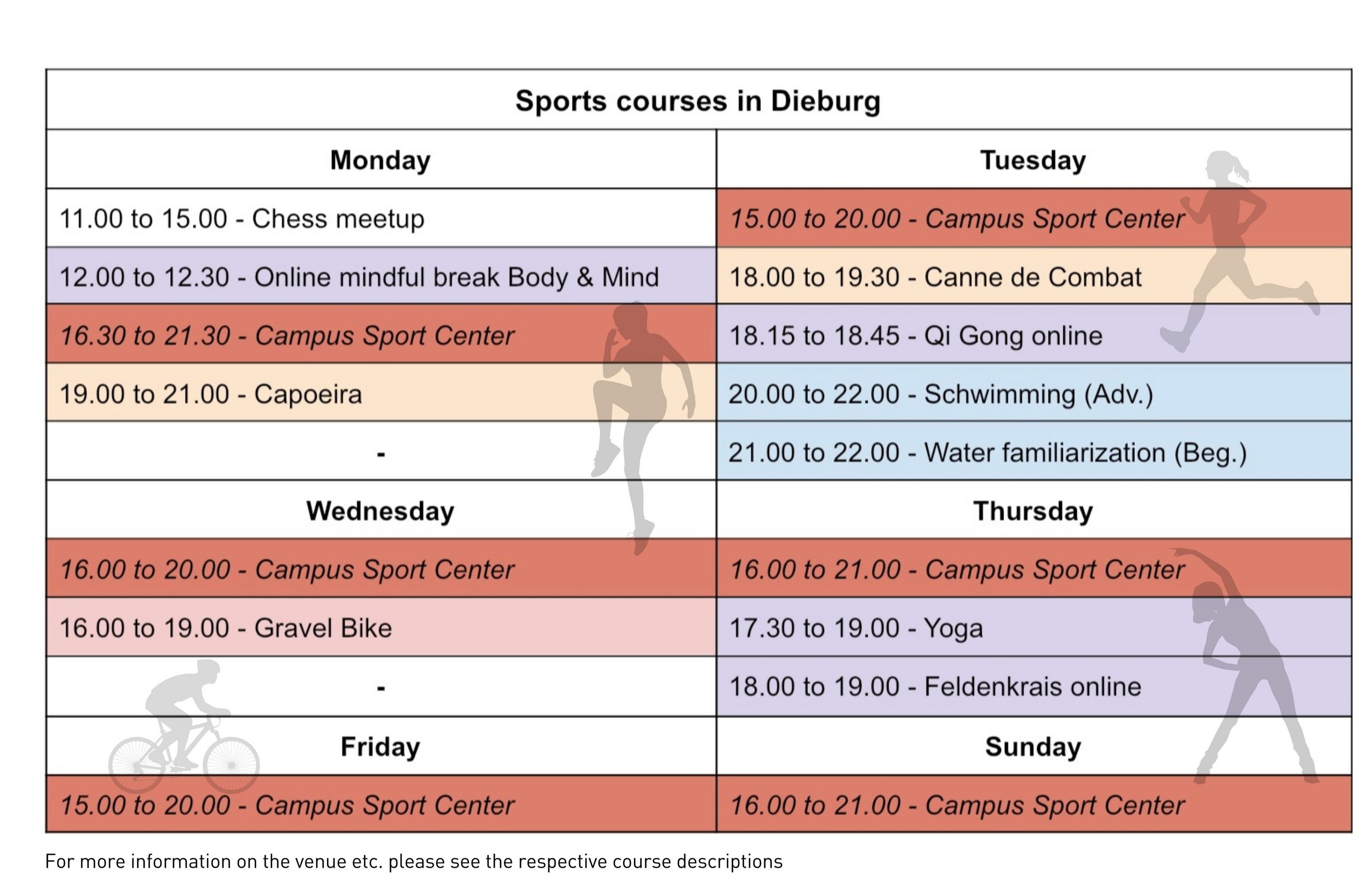 Outlines of the sports courses on the h_da Campus in Dieburg